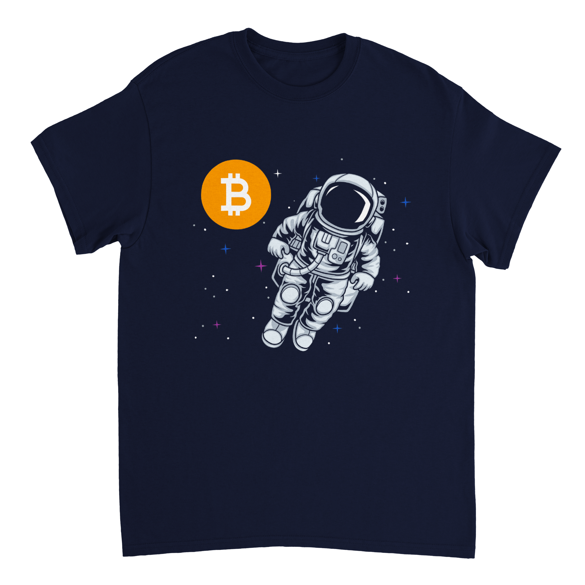 Combine your love for outer space and cryptocurrency with our amazing “Deep space Astronaut Bitcoin” t-shirt! This unique design features a bold astronaut floating amongst the stars, looking at a shining Bitcoin floatiog. Made with high-quality cotton, this tee is both comfortable and durable, making it perfect for any Bitcoin meetup, even in space. Whether you’re exploring the universe or discussing the latest developments in the world of crypto, our “Astronaut Bitcoin” t-shirt is the perfect way to show off your unique style. So why wait? Order yours today and let the world know that you’re ready to take on the cosmos – and the blockchain!